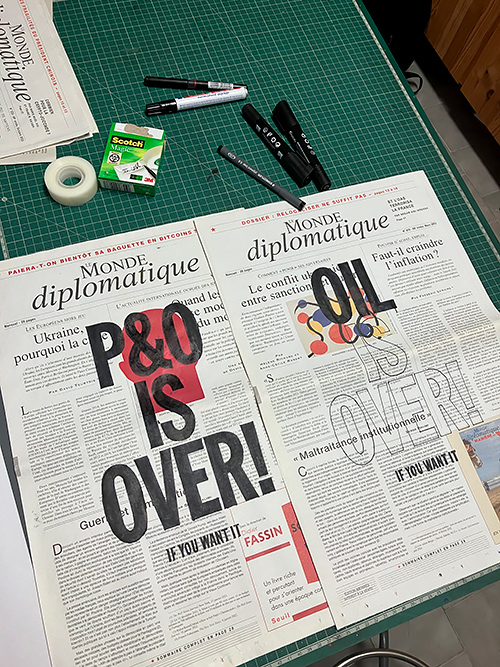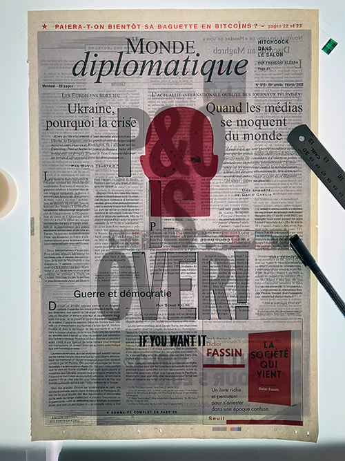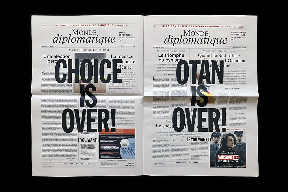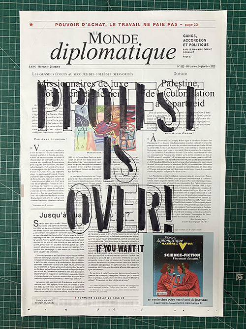 • A bunch of altered replicas of "Le Monde Diplomatique", punctuated by the insidious "... is over, if you want it";