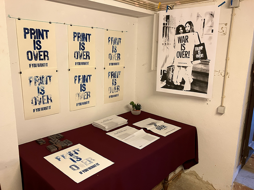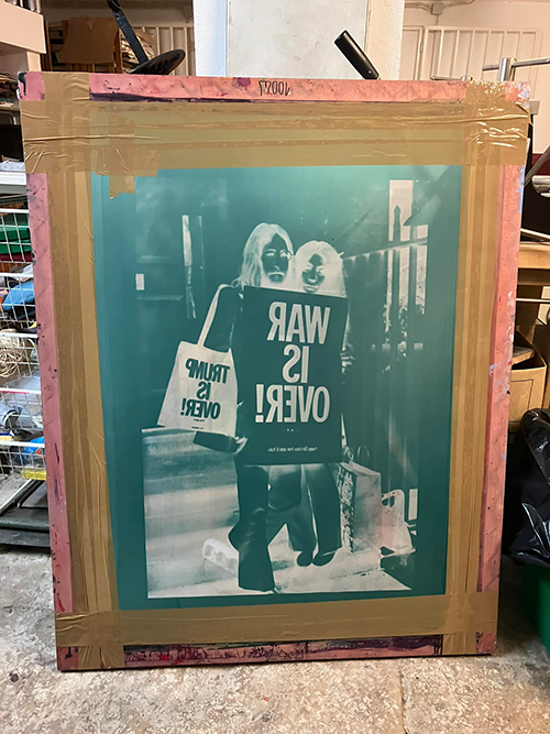 • A series of screenprints (70cmx100 cm), bearing the altered image of the couple John & Yoko holding a sign - "War is over" - and a bag - "Trump is over".