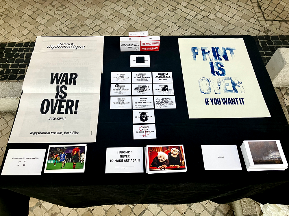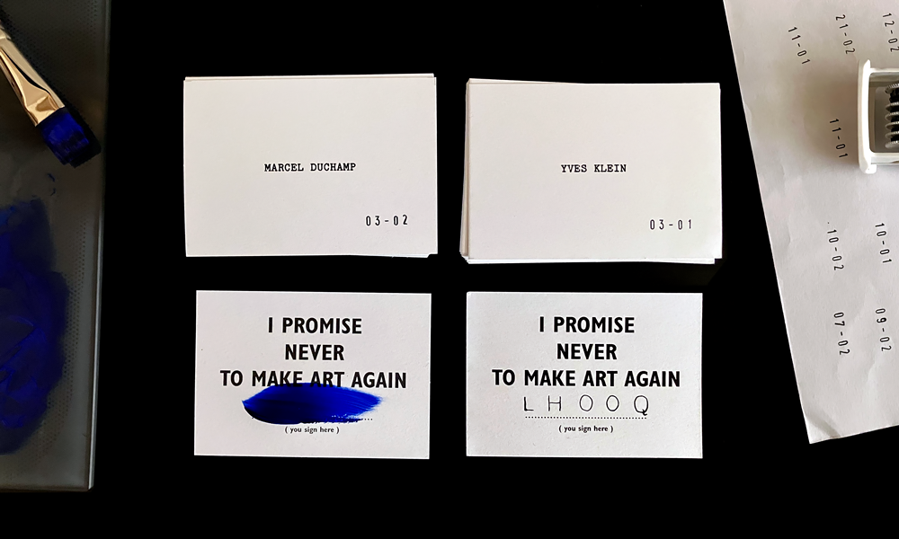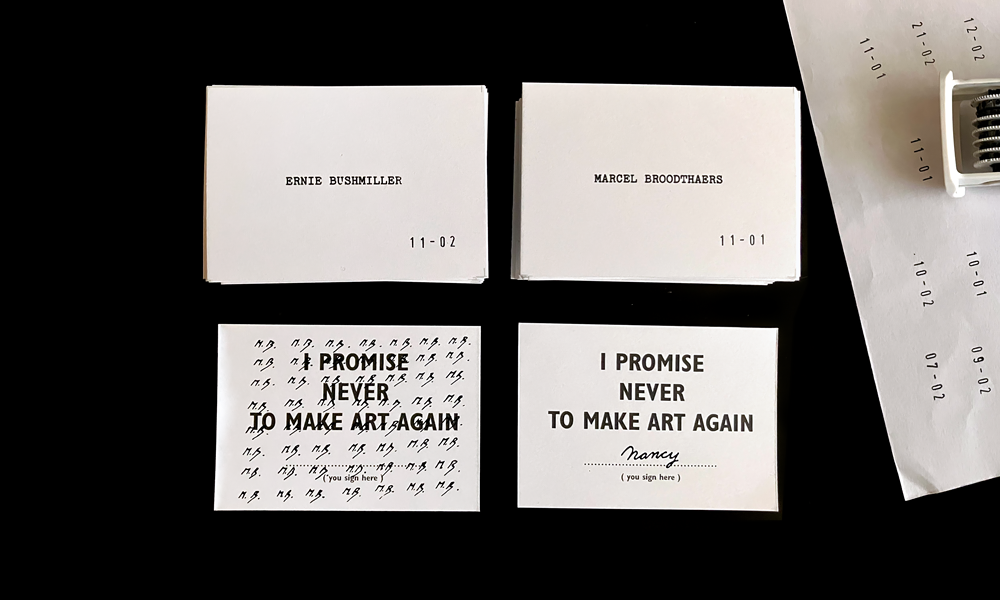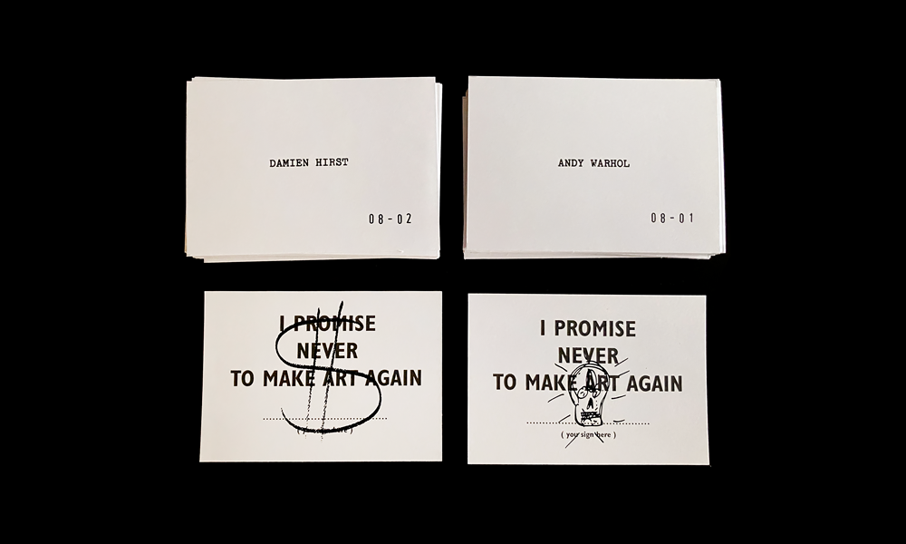 I asked chatgpt if he knew of any artist signing the card "I promise never to make art again" by Bob & Roberta Smith.